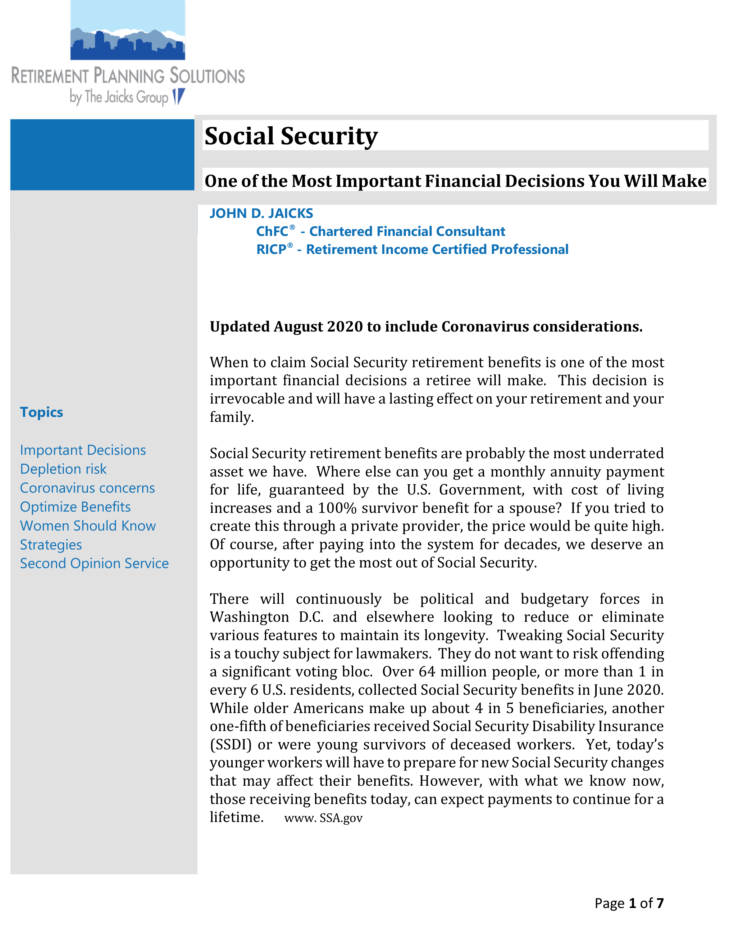 We’re very hopeful for an opportunity to discuss your retirement strategy so you can learn firsthand how we can be of benefit.